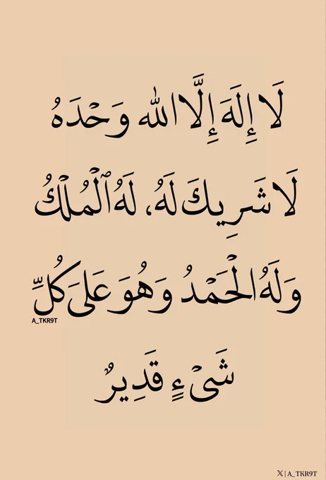 لا إله إلا الله وحده لا شريك له ، له الملك ، وله الحمد ، وهو على كل شيء قدير