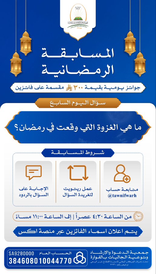 ٣- الإجابة في أسفل التغريدة على هاشتاق: #مسابقة_أيتام_الجموم_الرمضانية1