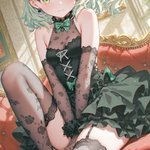 地雷系・眼帯ちゃん(匂いフェチ) 「おはよう先輩! 最初はちょっと気になってたのに、 今は…この匂いすると好きって思う💜」 SFW illustration