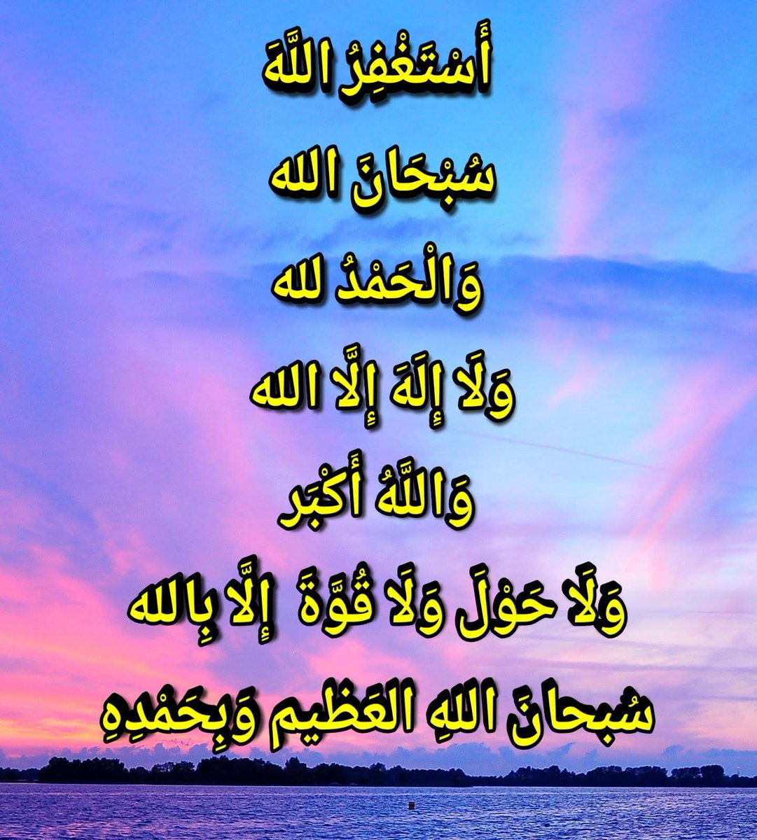 أَسْتَغْفِرُ اللَّهَ سُبْحَانَ الله وَالْحَمْدُ لله وَلَا إِلَهَ إِلَّا الله وَاللَّهُ أَكْبَر وَلَا حَوْلَ وَلَا قُوَّةَ إِلَّا بِالله سُبحانَ اللهِ العَظیم وَبِحَمْدِەِ