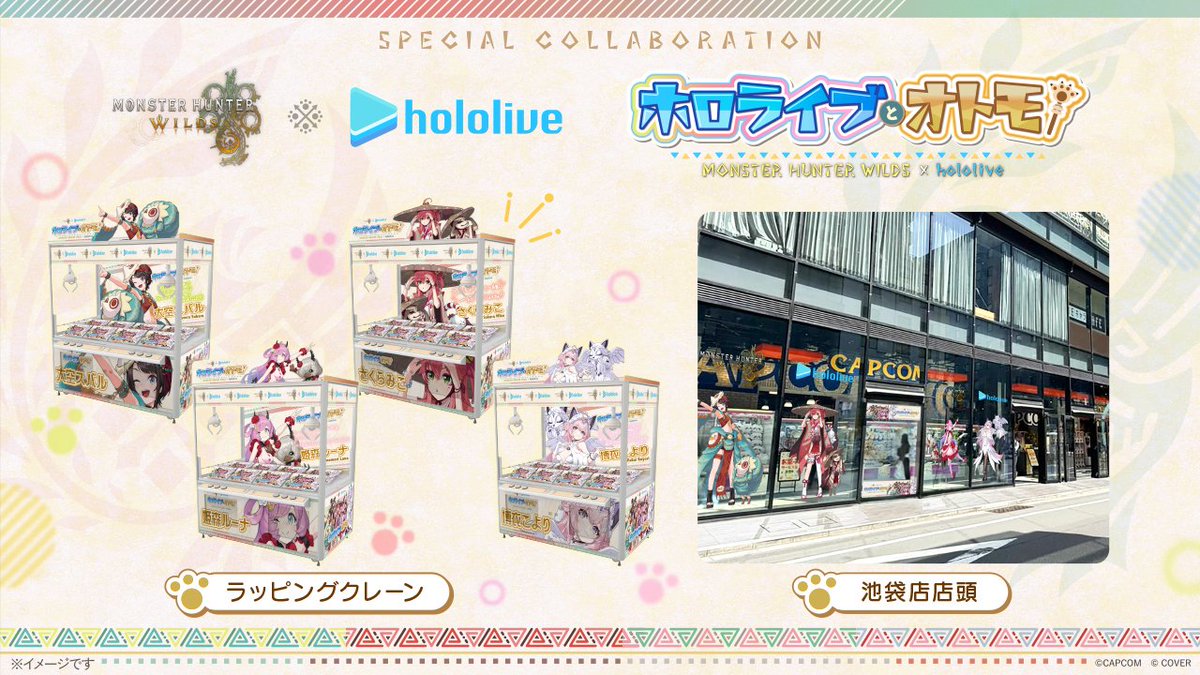 「モンスターハンターワイルズ」と「ホロライブ」がコラボ決定!オトモアイルーとおそろいの特別なコラボ衣装を纏ったプライズ景品がカプコンの直営店で登場!さらにカプコンカフェでコラボカフェも開催!