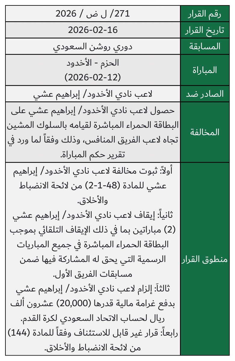 نسخة من قرارات لجنة الانضباط والأخلاق و لجنة الاستئناف و لجنة الاحتراف وأوضاع اللاعبين الصادرة من @SaudiFF الاتحاد السعودي لكرة القدم (حساب شخصي غير رسمي)