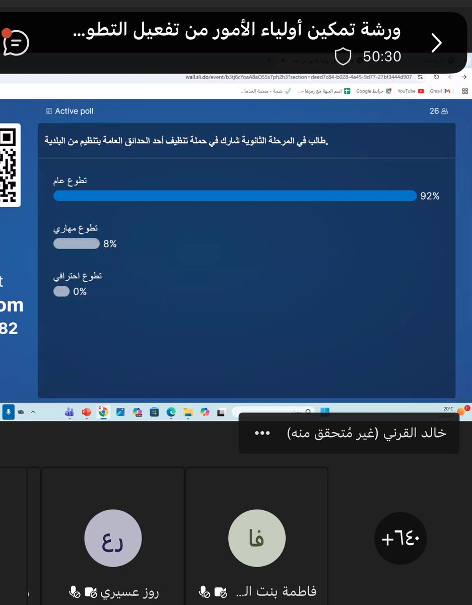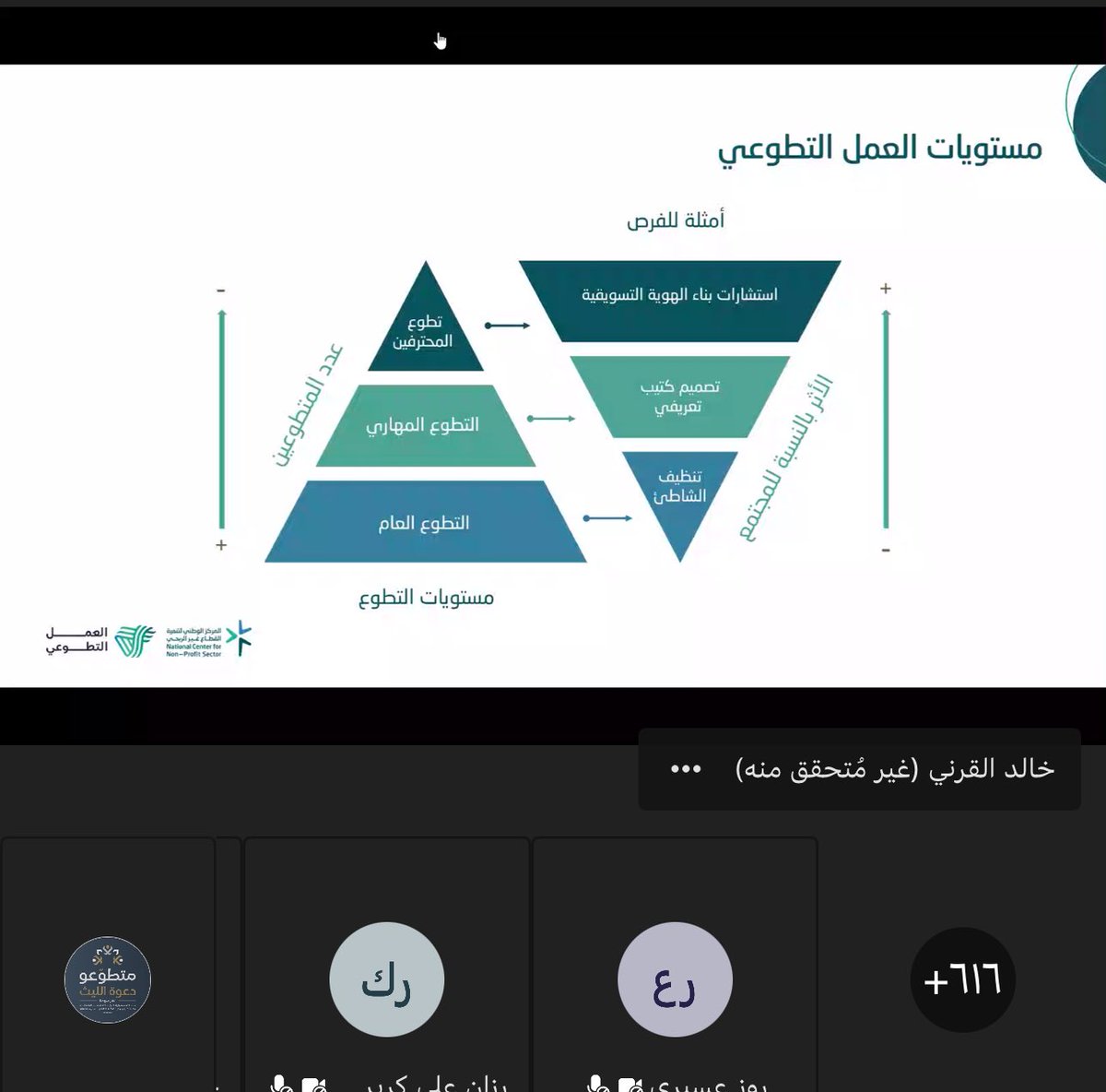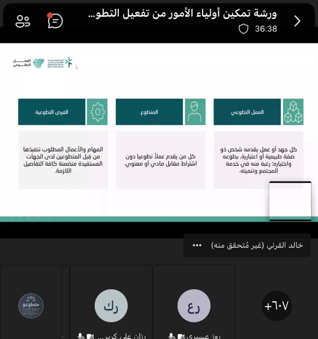 الورشة التدريبية (عن بُعد) بالتعاون مع المركز الوطني لتنمية القطاع غير الربحي، بعنوان: تمكين أولياء الأمور من تفعيل التطوع المهاري لتنمية مهارات الأبناء والشباب.