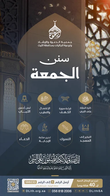 اللهمّ صلّ وسلم علىٰ نبينا محمّدٍ ﷺ وعلىٰ آلٰه وصحبه أجمعين. #ليلة_الجمعة#سنن_الجمعة⇩