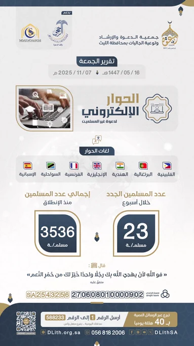 #تقرير_الجمعة | الحمد لله الذي عمَّ فضله، فشهد هذا الأسبوع دخول (37) مهتديًا في نور الإسلام.✨