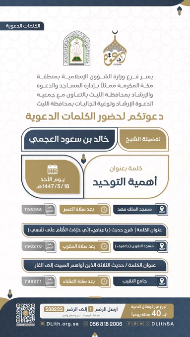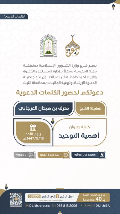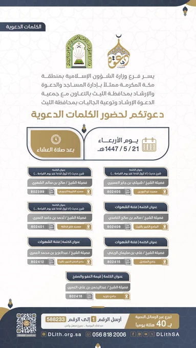 جمعية الدعوة بالليث تدعوكم لحضور #الكلمات_الدعوية
