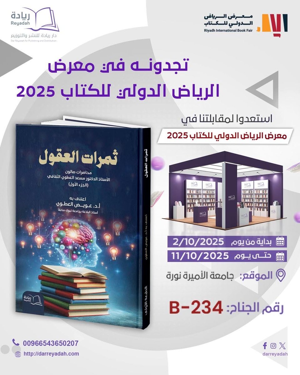 كتابنا: ثمرات العقول في المعرض الدولي للكتاب بالرياض من 2-10 وحتى 11-10