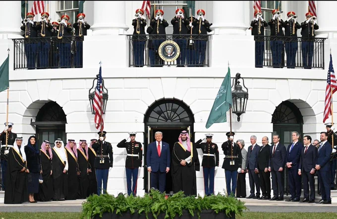 طائرات حربية تحلق في سماء البيت الأبيض ترحيبا ب ولي العهد الأمير محمد بن سلمان لحظة استقبال الرئيس الأمريكي دونالد ترمب له