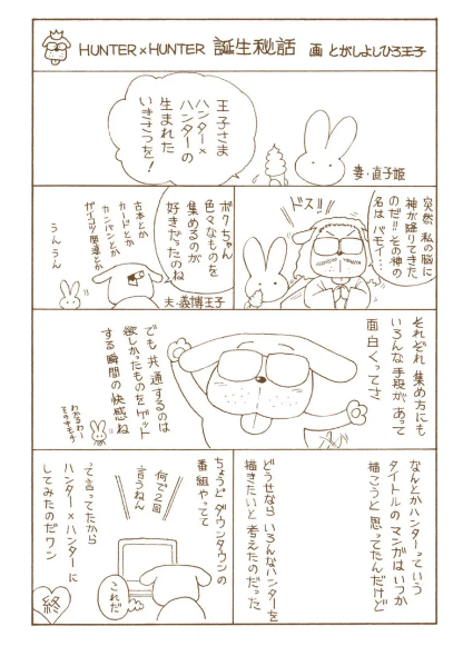 タイトルの由来 ⇒ 収集するのが好きで「~ハンター」 ⇒ ダウンタウンの番組を見て2回繰り返してみた ⇒ 『HUNTERxHUNTER』誕生