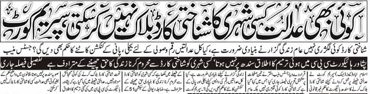 شناختی کارڈ عیاشی نہیں بنیادی ضرورت ہے شناختی کارڈ بلاک نہیں کیا جا سکتا۔سپریم کورٹ