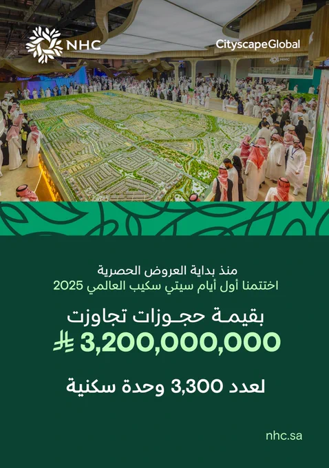 أعلن الرئيس التنفيذي لـ #NHC الأستاذ محمد البطي، عن إطلاق معروض عقاري يتجاوز 134 ألف وحدة سكنية بقيمة تفوق 100 مليار خلال معرض #سيتي_سكيب_العالمي_2025 ضمن خطط التوسع العمراني للشركة