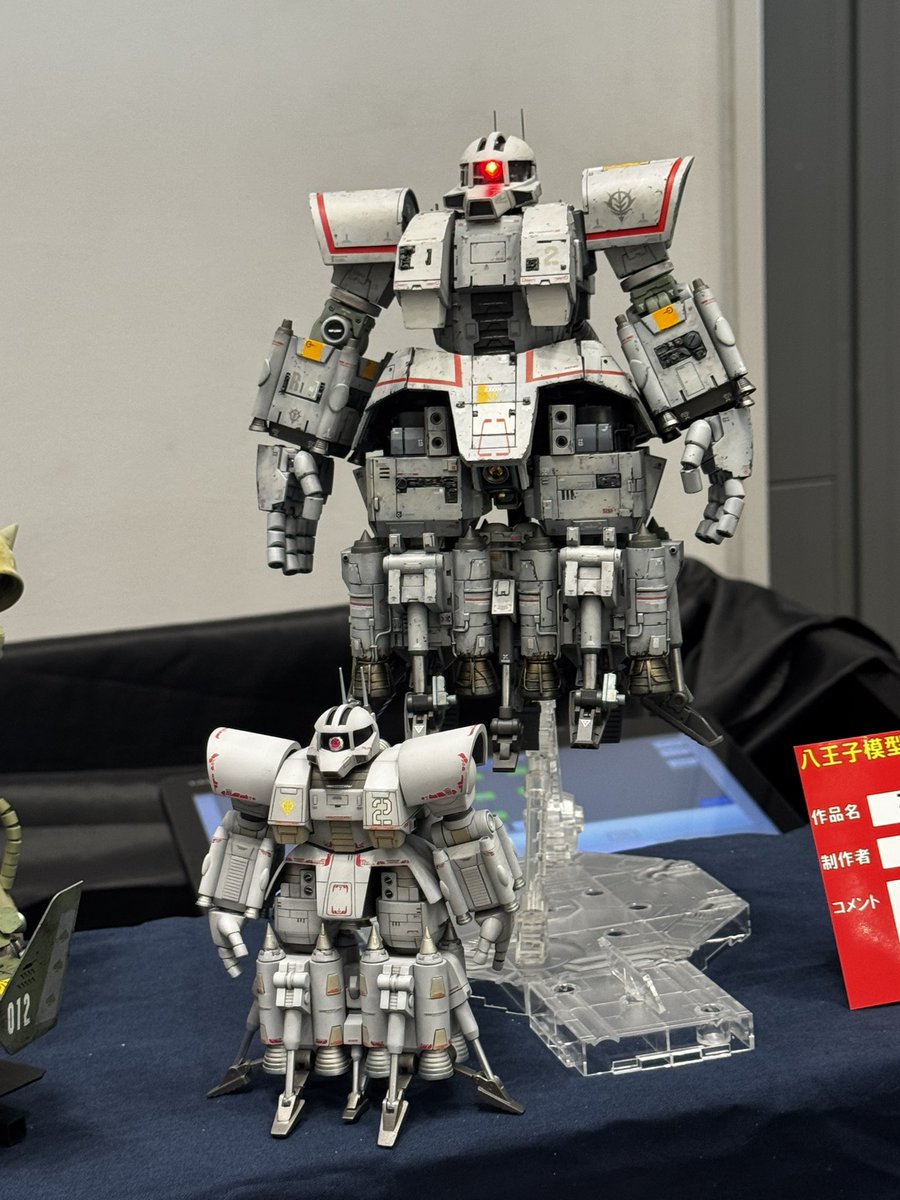八展にて1/100 湿地帯戦の川◯名人作品で大破した偽装しきれてないアッガイも是非是非見てください🤣ちゃんとジム仕込んでます🤣