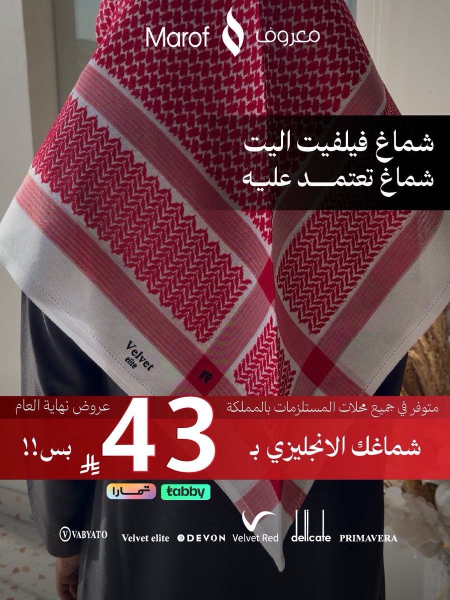 أشمغة إصدار السنة 2026 مع معروف فليفت إليت و فلفيت ريد الان متوفرة بالمتجر الإلكتروني او امسح الباركود و زور اقرب محل مستلزمات رجالية لك #شماغ#السعودية#ترند