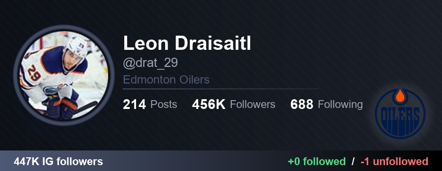 π drat_29 (Leon Draisaitl) started following 0 and unfollowed 1: β ainyschu (A N A B E L S C H U N K E) π