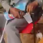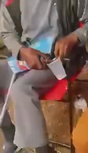 94 year old grandpa out here at baby cousin 1st birthday party sneak drinking Hennessy from a Capri Sun box