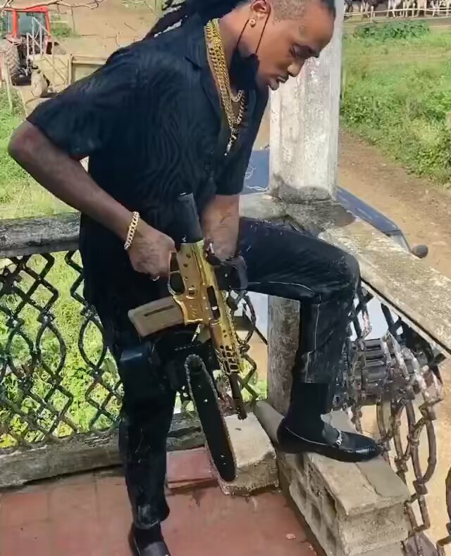 Quavo put a chainsaw attachment on his new gold assault rifle ๐ณ