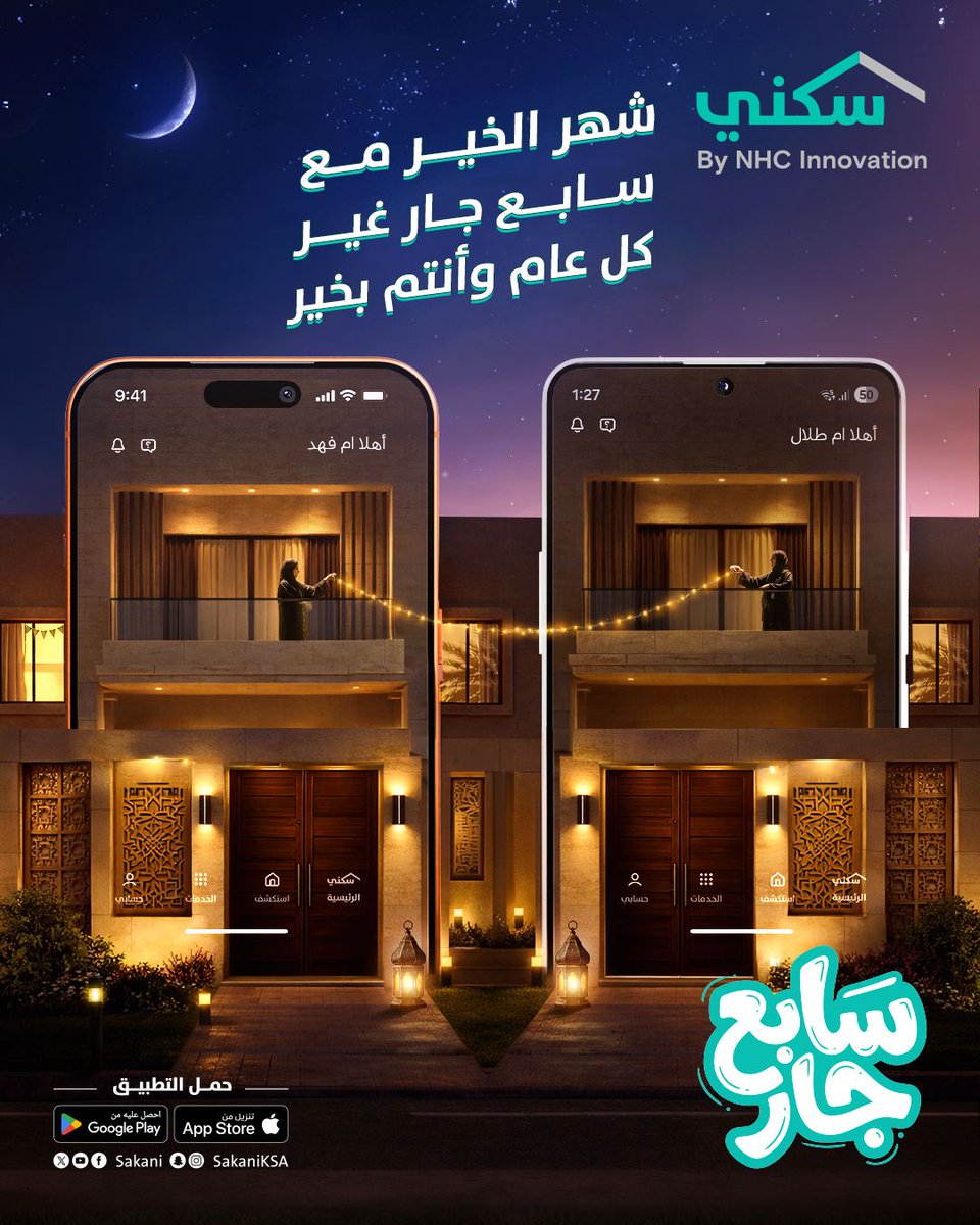 حيّ جارك من خدمة سابع جار عبر تطبيق سكني وبارك له بالشهر الفضيل.