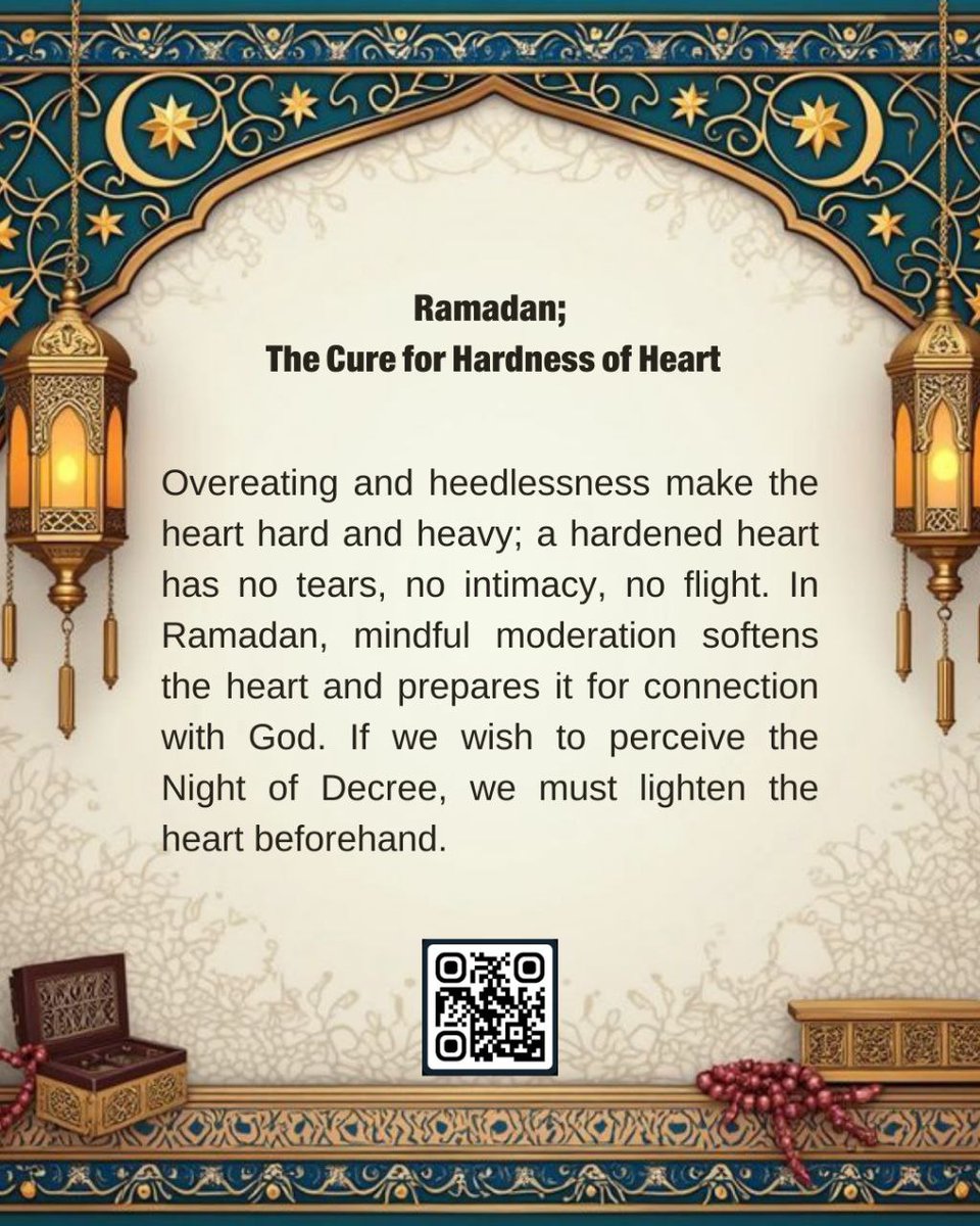 In Ramadan,mindful moderation softens the heart&prepares it for connection with God.If we wish to perceive the Night of Power,we must lighten the ❤️ beforehand