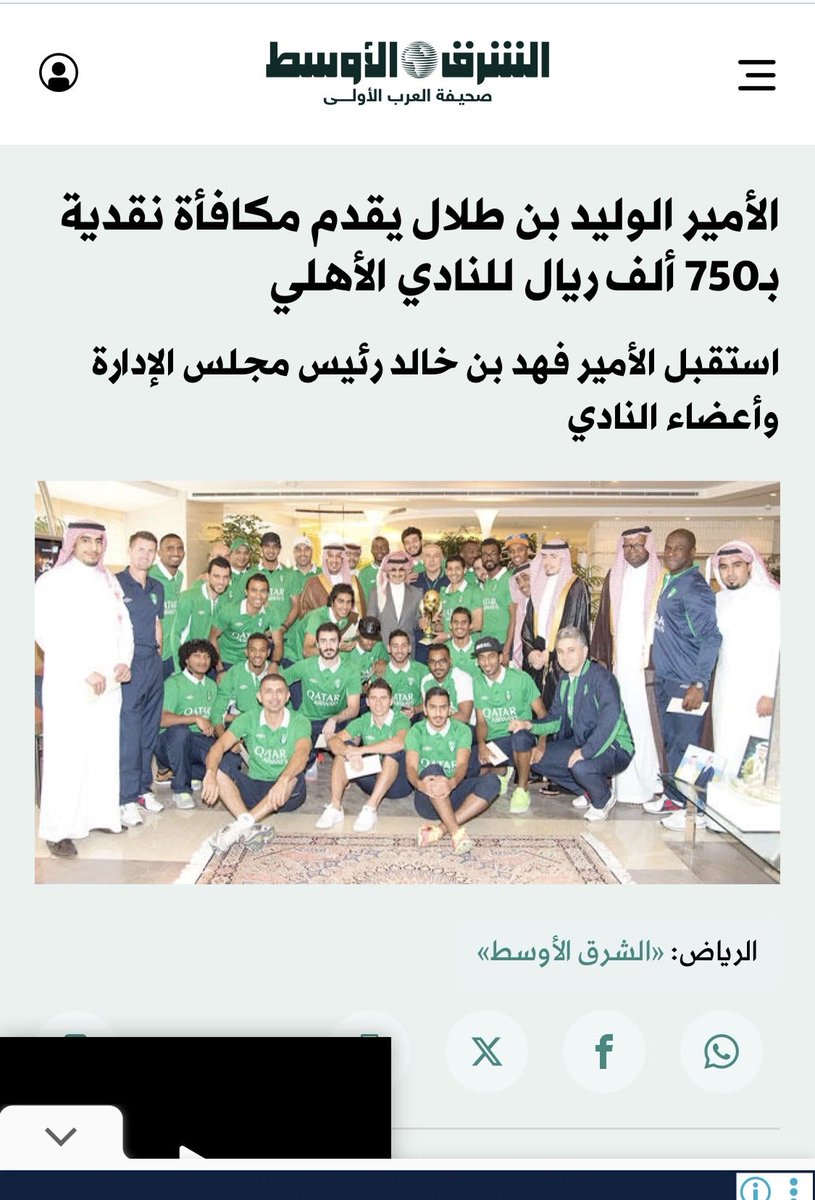 الأمير عبدالله الفيصل رحمه الله والأمير الوليد بن طلال حفظه الله رموز تاريخيّة في دعم الأندية الأخرى .. الأول في حقبة البدايات … والثاني في الحقبة الأخيرة ما قبل الاستحواذ … وللتذكير فقط بعيدًا عن العاطفة : ١- عام 2015 : قدّم الأمير الوليد دعما ماليا ٧٥٠ الف ريال للنادي الأهلي بعد تحقيقه كأس ولي العهد. 2- عام 2016 : دعم الأهلي بمبلغ مليون ريال عقب تحقيق الدوري. 3- عام 2016 : دعم الأهلي بمبلغ مليون ريال بعد تحقيق السوبر. الحقيقة لا تنتقص من أحد … بل تُنصف كل من أسهم ودعم … مهما اختلفت الميول …!