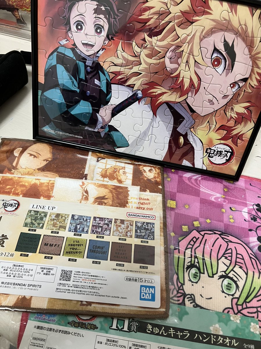 ひとちゃん様からお譲りしていただいたグッツが届きました🎁 煉獄さんの好きなシーンが入ってるハンカチが想像以上に素敵で使えません😍ありがとうございましたm(_ _)m