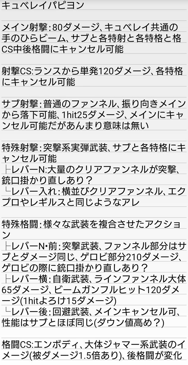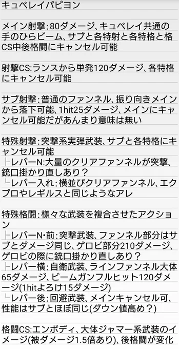 キュベレイパピヨンを軽く検証してみた 恐らく抜けあり サブや後特格の降りテクルートも豊富で地味に格闘強いしF覚適性ありそうだけど、一番ダメージ出そうなエンボディ中後格闘のリスクリターンを考慮するとロマンすぎるかも? でもまあ総合的にアイラ•ヤルキアンネンとは言えるか
