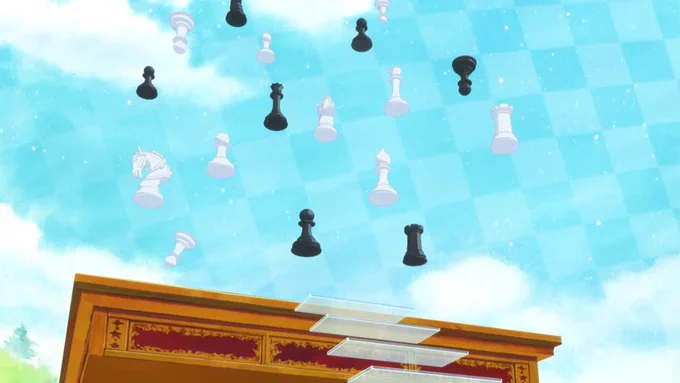 ◇  ̄ ̄ ̄ ̄ ̄ ̄ ̄ ̄ ̄ ̄ ̄ ̄ ̄ ̄ ̄ ̄ ̄ ̄ ワンダーランドに佇むチェス盤♟️ りせとアリスが上に乗ると、駒とチェスキューブが宙を舞い始め…