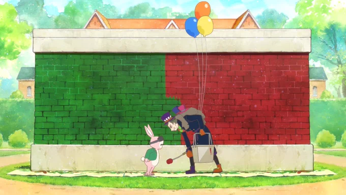◇  ̄ ̄ ̄ ̄ ̄ ̄ ̄ ̄ ̄ ̄ ̄ ̄ ̄ ̄ ̄ ̄ ̄ ̄ 🎩「赤の方が美しい!」🟥 🐰「緑の方が美しい!」🟩