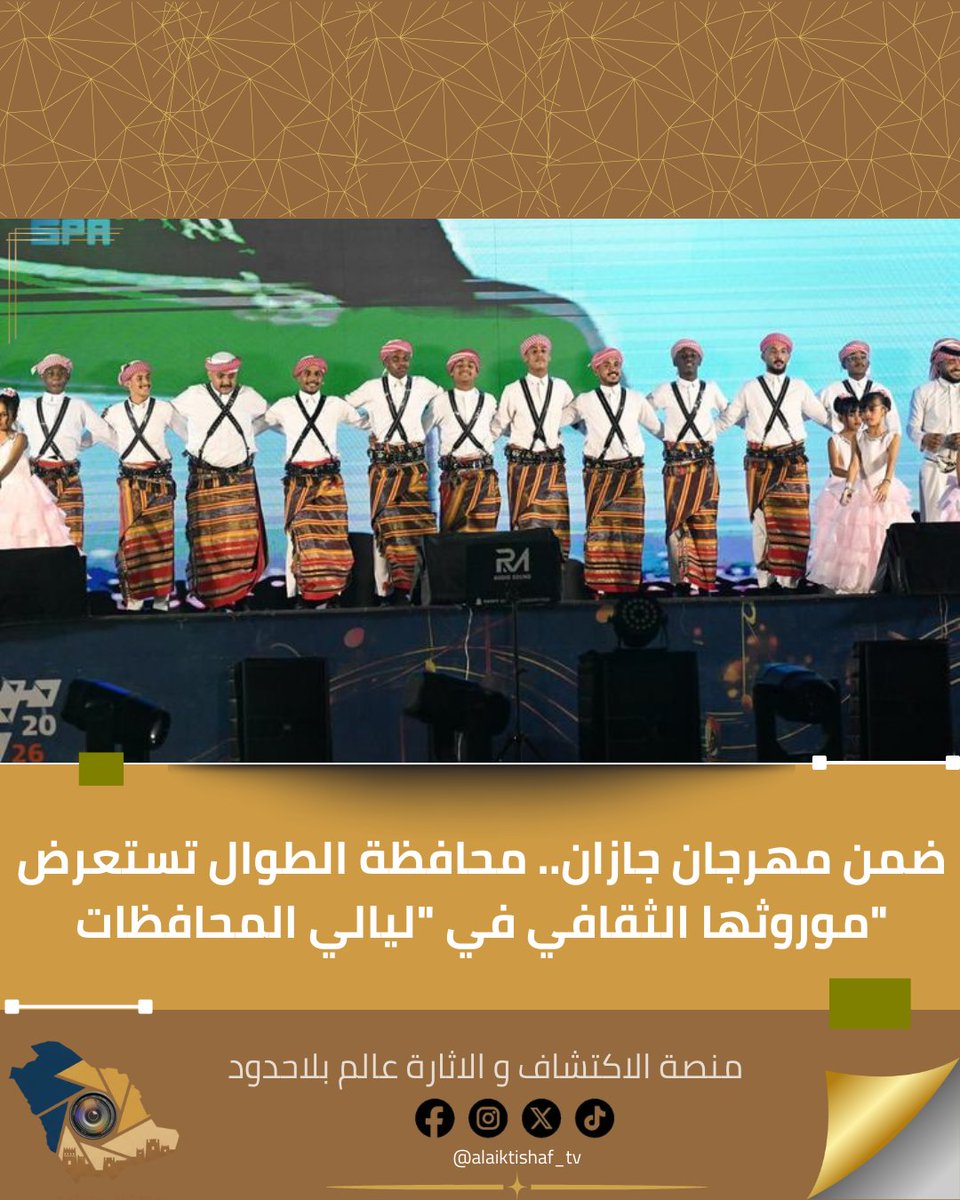 ضمن #مهرجان_جازان2026، احتفى مسرح السفينة بمشاركة محافظة الطوال في "ليالي المحافظات"، حيث قدمت فرقة الفنون الشعبية عروضاً ورقصات تراثية جسدت أصالة الموروث وهوية المحافظة الثقافية، وسط تفاعل كبير من الأهالي والزوار. #اكتشف_جازان#منصة_الاكتشاف_والاثارة