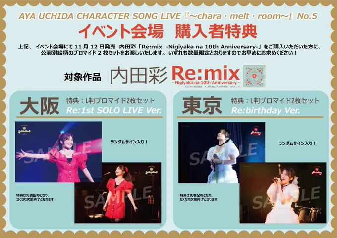 内田彩アーティストデビュー10周年記念アルバム『Re:mix - Nigiyaka na 10th Anniversary -』11月12日発売🍎