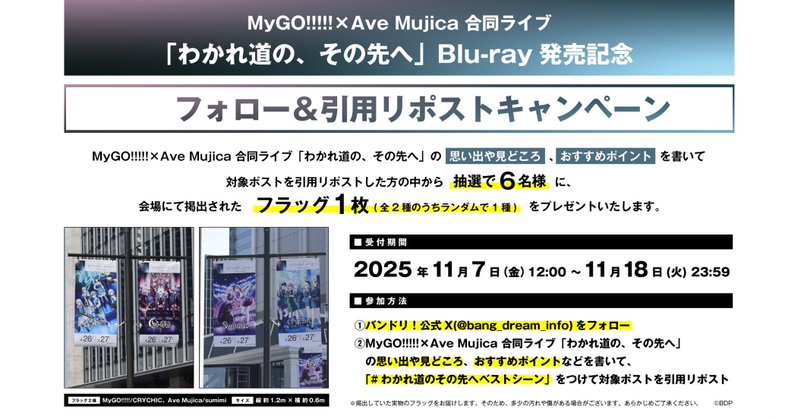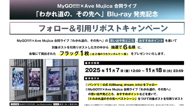 MyGO!!!!!×Ave Mujica 合同ライブ「わかれ道の、その先へ」Blu-ray 発売記念 フォロー&引用リポストキャンペーン開催について掲載中。