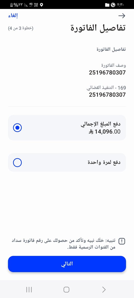 │ 25196780307 │ 13,996 ريال │ 169 │
