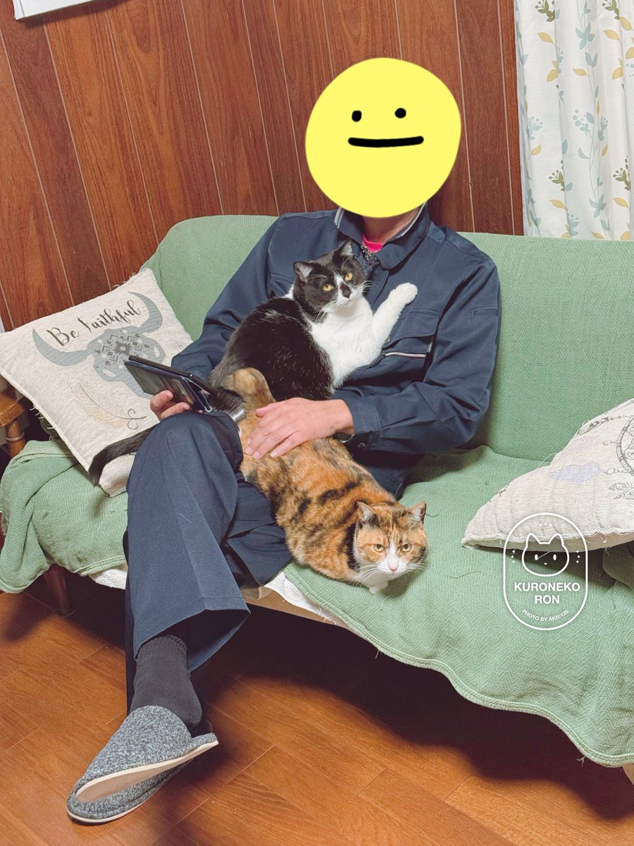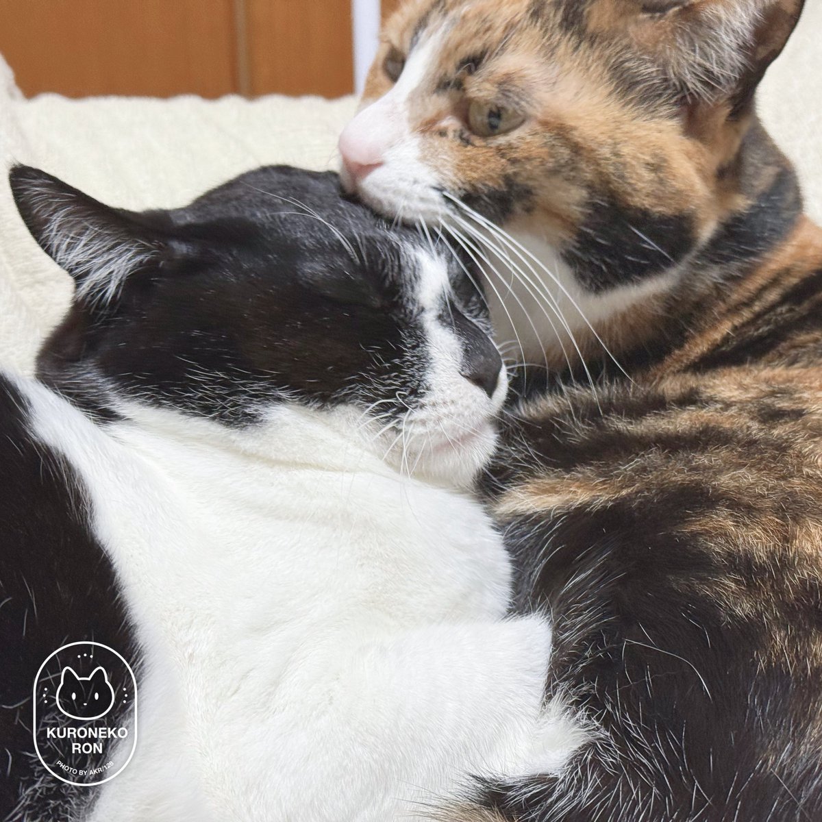 お見舞いありがとうございます ちゃんと安静にしておりますのでね こちらは負傷した利き腕に寄り添ってくれてる優しいろんさん ろんさんは人間が調子悪いのを感じとるのがうまい