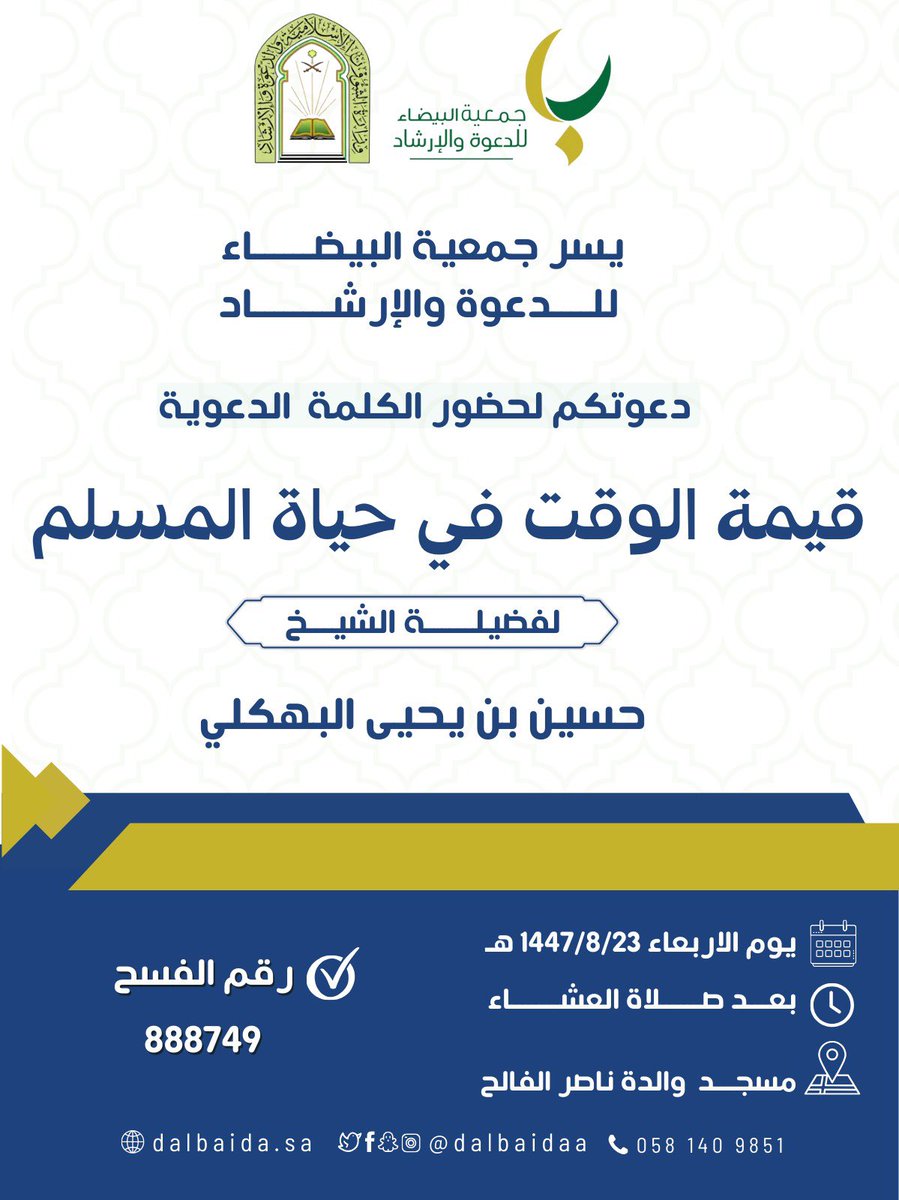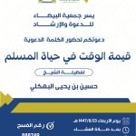 يسر جمعية البيضاء للدعوة والإرشاد دعوتكم لحضور الكلمة الدعوية