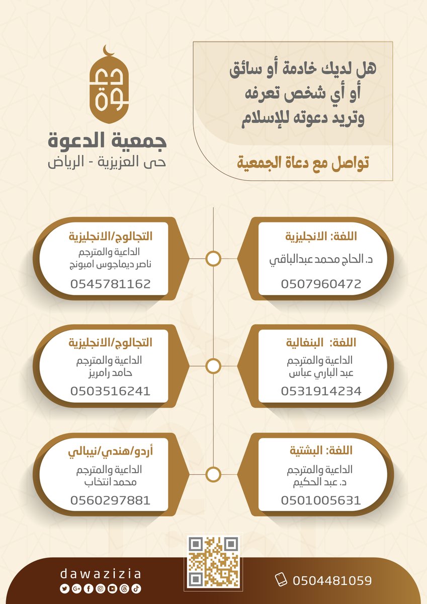 جمعية الدعوة والإرشاد وتوعية الجاليات بحي العزيزية في الرياض تحت إشراف المركز الوطني لتنمية القطاع غير الربحي، ووزارة الشؤون الإسلامية . رقم الترخيص (3596)