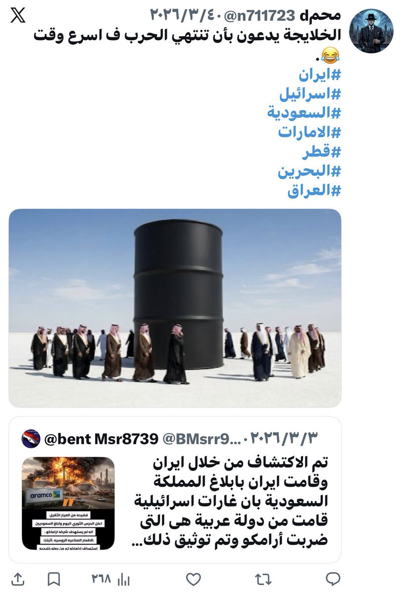 سجل ياتاريخ ان ايران ضربتها إسرائيل و امريكا راحت تدافع عن نفسها وتضرب دول الخليج والأردن وتركيا هي لما جاتها الفرصة على طبق من ذهب راحت تنتقم من غيرها اجل انت يا 🫏 مصدق انهم شهداء القدس وبدهم يحررون القدس ؟!😎😂😂😂😁#عاجل_الآن#السعودية_العظمى#الصقور_الرقمية_السعودية