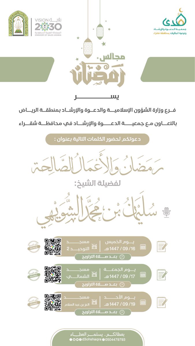 يسر #جمعية_الدعوة_بشقراء دعوتكم لحضور الكلمات الدعوية التالية بعنوان :
