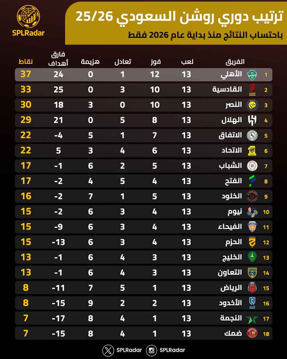 جدول مباريات النصر في الدوري موسم 2025/26 |