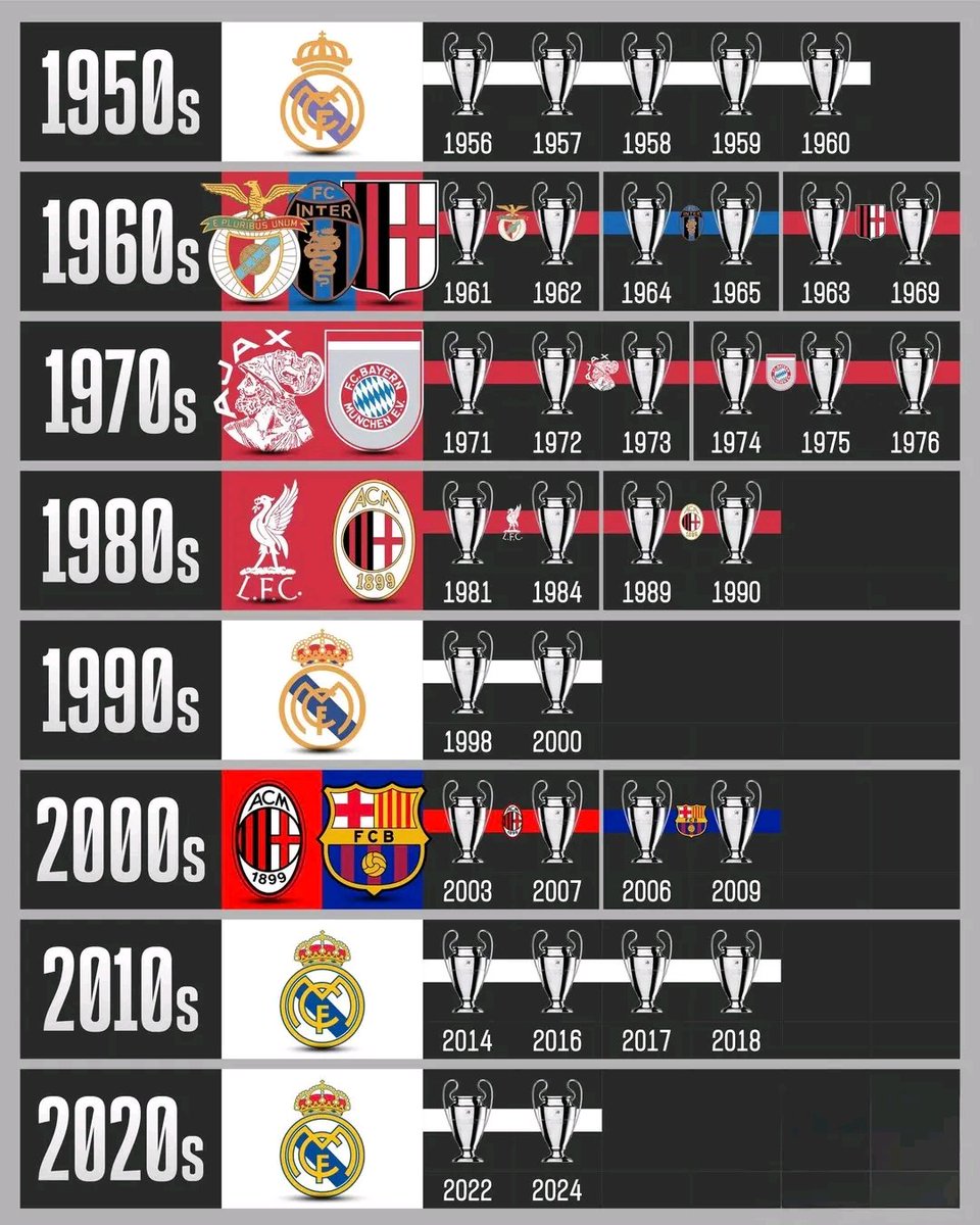 الفريق المهيمن في دوري أبطال أوروبا حسب العقد : 🚨🚨