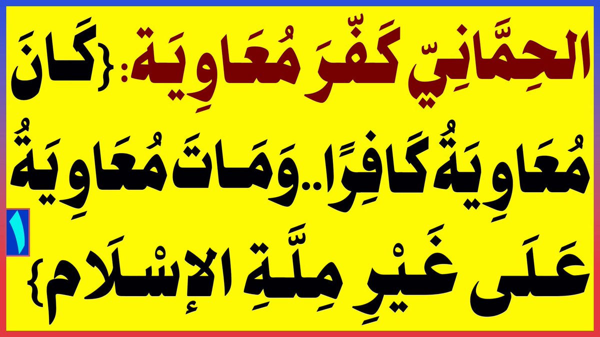 [7][8]:الحماني كفر معاوية: {كان معاوية كافرا..ومات معاوية على غير ملة الإسلام}