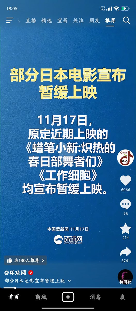 速報:最近の中日関係の緊張で中国で公開予定だったクレヨンしんちゃん、はたらく細胞、コナン劇場版が劇場公開中止を発表