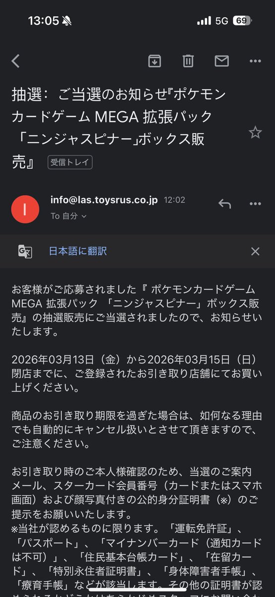 ファミマ:落選メール どうせ外れとるやろ…トイザらスからもメール来とるわ… 「「「当選のお知らせ」」」 トイザらス!!!!! 一生通う!!!!!!