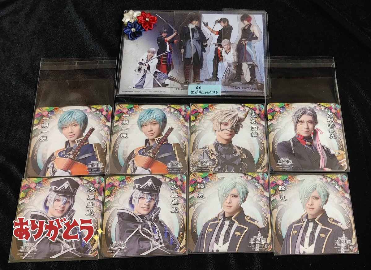 交換 ミュージカル 刀剣乱舞 2.5茶屋 にご茶屋 にごカフェ 刀ミュ 目出度歌誉花舞 十周年祝賀祭 クリアカード、コースター 譲 山姥切国広、大包平、長谷部、大慶、大般若、笹貫、一期、鬼丸、蜂須賀、大典太、ソハヤ、巴形、膝丸 求 クリアカード 肥前、鶴丸、TDCブロマイド 肥前、鶴丸 郵送