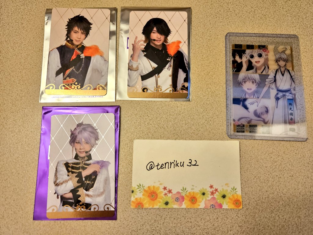 【交換/譲渡】ミュージカル刀剣乱舞 刀ミュ シブツタ SHIBUYA TSUTAYA 目出度歌誉花舞 十周年 祝賀祭 衣裳展 ランダム ふぉとカード A B 譲)陸奥守吉行、長曽祢虎徹、源清麿 求)鶴丸、三日月 or 定価(300円)+送料 ★郵送希望。 ★PayPay払いのみ。 検索からでもお気軽にお声かけください。