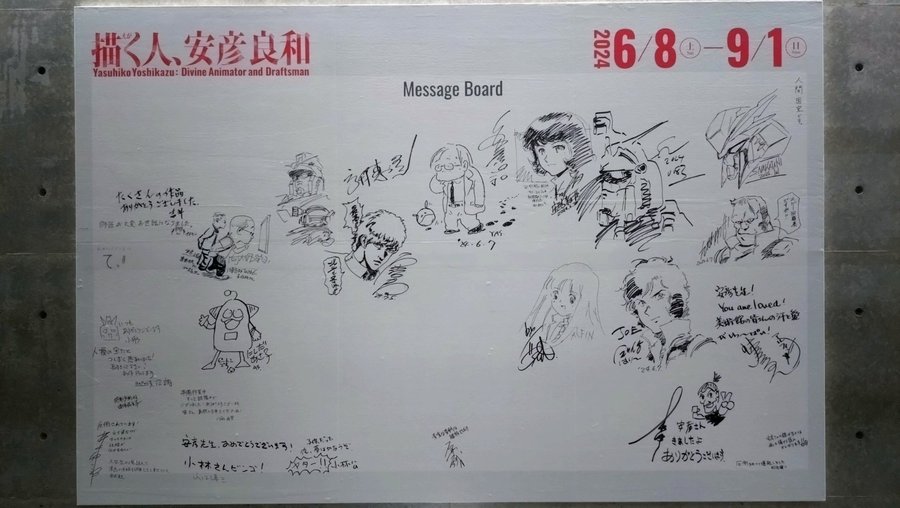 安彦良和展のメッセージボードが最初の兵庫県立美術館から巡回して空白が埋まって来てるけど写真は兵庫会場から東京会場に行かれる方(特に星団民)は原哲夫先生の下に注目して下さい😅 さすが東京会場の内覧会にお越しになられたようで。