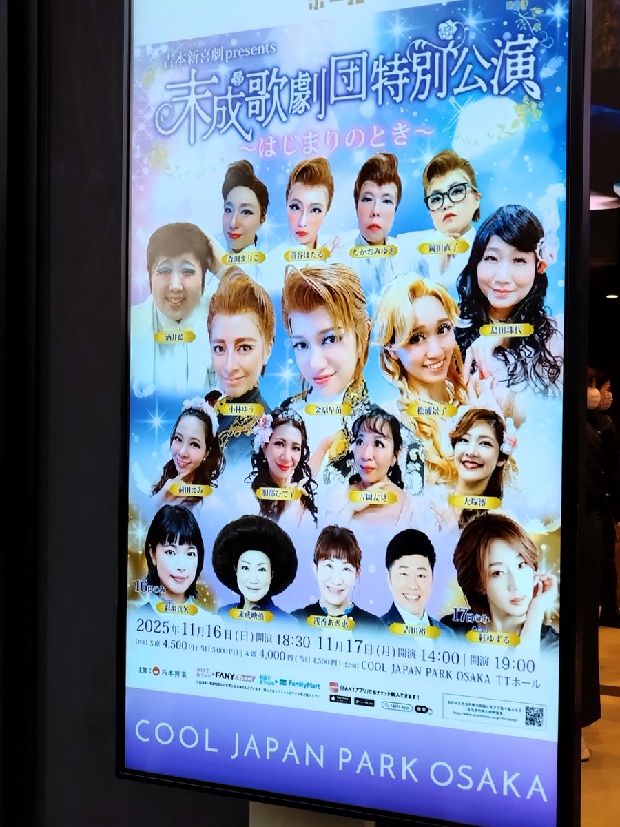 今日はこちらへ!めっちゃオモロかった🤣 いつもの新喜劇の流れはありつつヅカ要素も盛り盛り 簡単なstory→年齢容姿関係なく芸のある人が所属する末成歌劇団、存続の危機。そんな中、新作ロミジュリ公演初日にOGの紅ゆずるさんがやってくる ・ちゃんとロミジュリ ・たかおさんはストーリーテラー