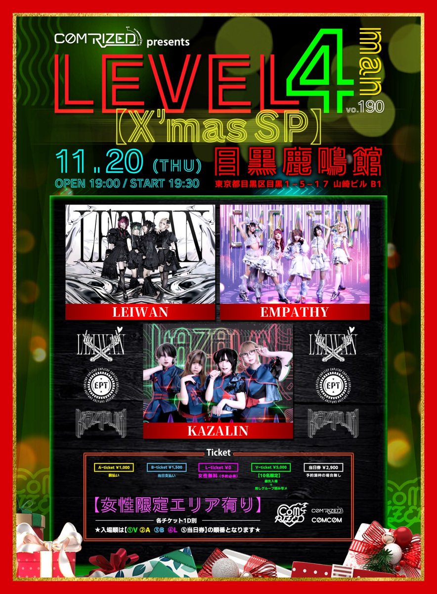 💟💟 『プレゼント交換タイム有🎁』 2025年11月20日(木) COMRIZED presents @目黒鹿鳴館 🔻1部 XmasSP【