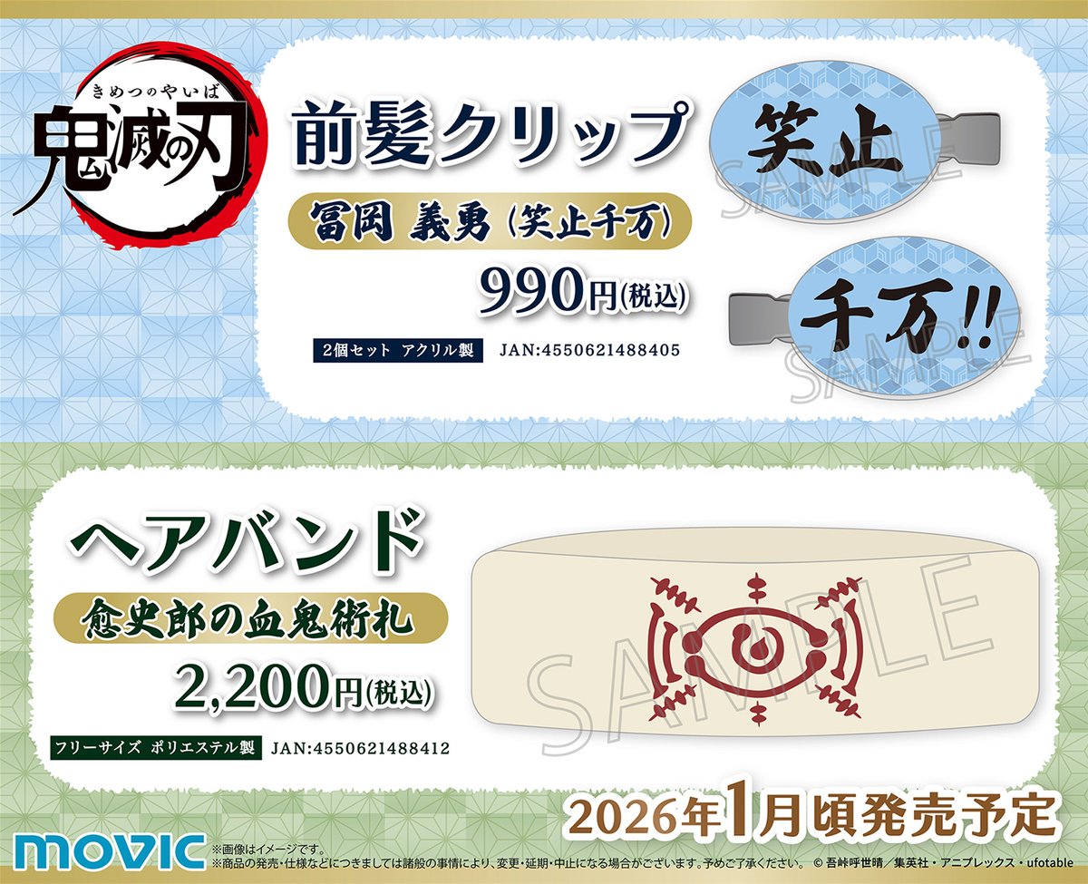 2026年1月発売予定 鬼滅の刃 ・前髪クリップ/冨岡 義勇 笑止千万 ・ヘアバンド/愈史郎の血鬼術札 ▼あみあみで予約開始!