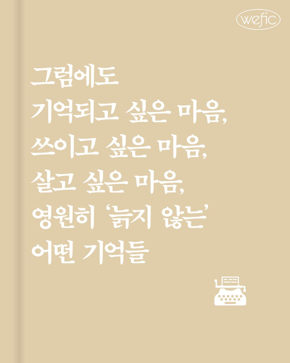 ❝‘보고 싶어’라고 치면 ‘보고 싶ㅓ’가 된다는 걸, ‘기다릴게’라는 글자를 누르면 ‘기ㅏ릴게’가 된다는 걸❞ 잃어가는 기억, 허물어지는 몸, 그럼에도 끝까지 붙들고 싶은 말들 ⌨ 박지영 《찰스 부코스키 타자기》 《찰스 부코스키 타자기》는 나이 든다는 것, 말과 기억을 잃어가고 몸이 허물어지는 것에 대한 이야기다. 살아 있다는 것만으로 지불해야 하는 값비싼 ‘생명 유지 비용’과 더 이상 그 비용을 감당하고 싶지 않아 하는 사회의 냉담한 시선, 그럼에도 기억되고 싶은 마음, 쓰이고 싶은 마음, 살고 싶은 마음, 영원히 ‘늙지 않는’ 어떤 기억들에 대해 이야기한다. 🌈 단 한 편의 이야기를 깊게 호흡하는 특별한 경험, 위픽 🍫‍ 초판 한정 사인 인쇄본을 서점에서 만나보세요!