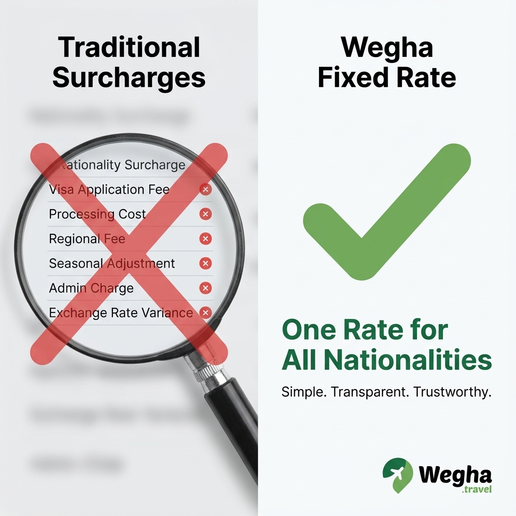 At Wegha, transparency means a fixed rate for all nationalities. Same price, every time.