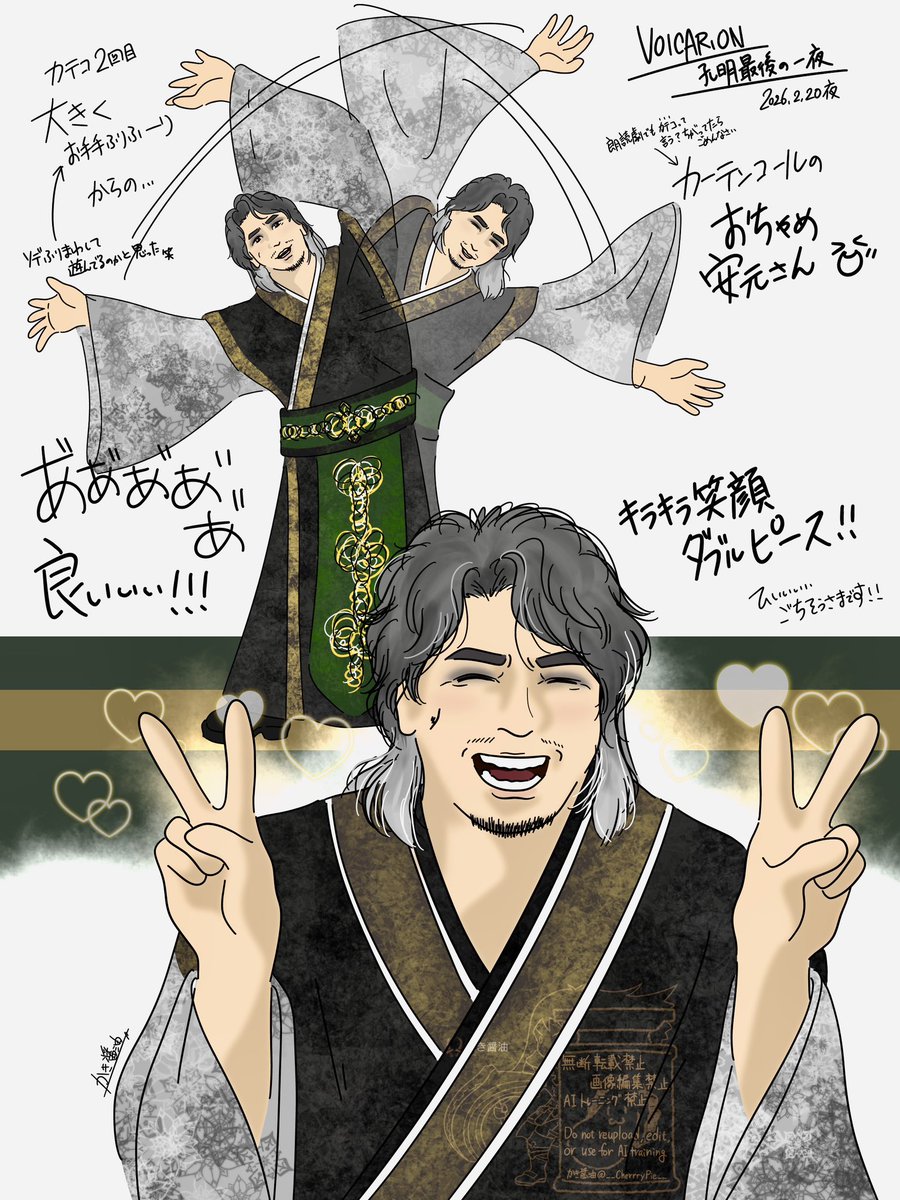 VOICARION 孔明最後の一夜カーテンコールの安元さんの… 大きくおててを振ってぇぇ〜っ キラキラ笑顔ダブルピース!!!! …に昇天した人〜っ!! (*´∀`*)ノ✨✨✨